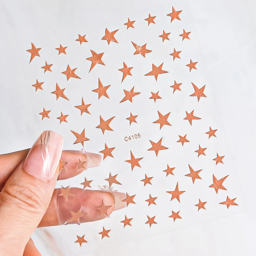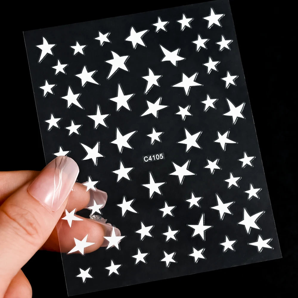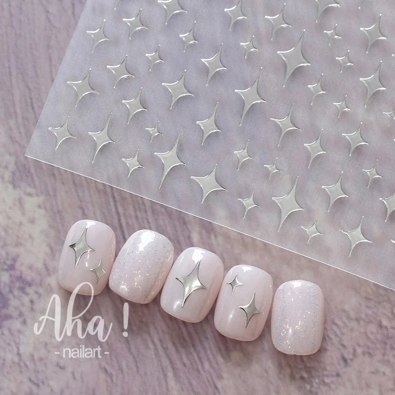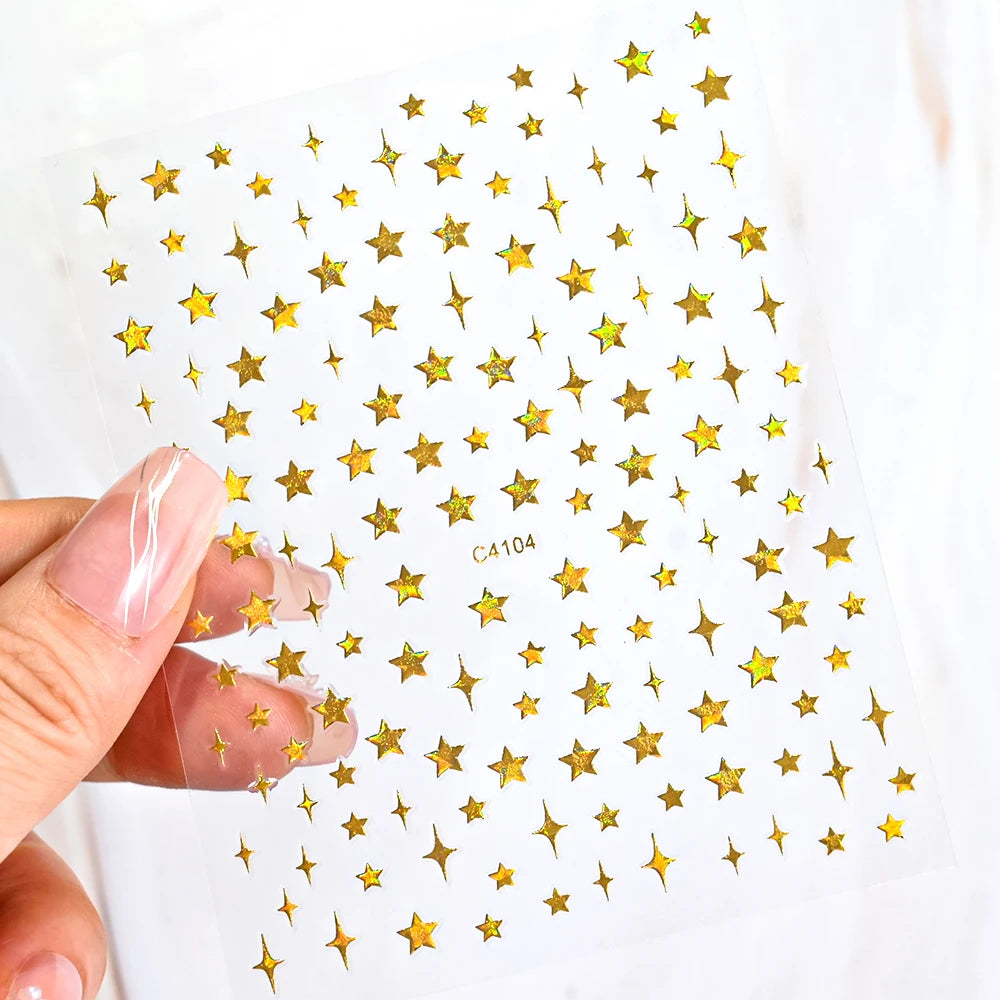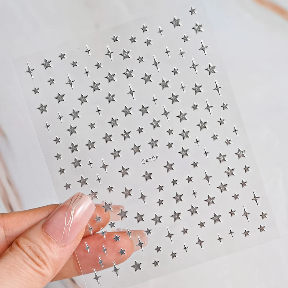 1pc Sliver Gold Star Nail Art Stickers Y2K Charms Self-Adhesive Sliders Laser White Chrome Gel Polish Decals Kawaii Accesories