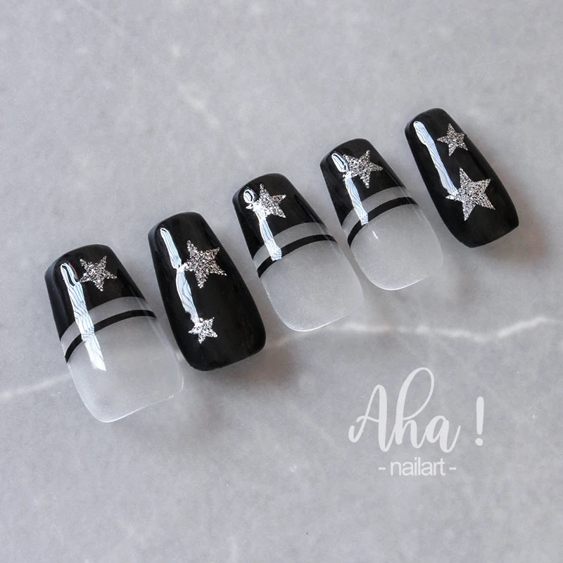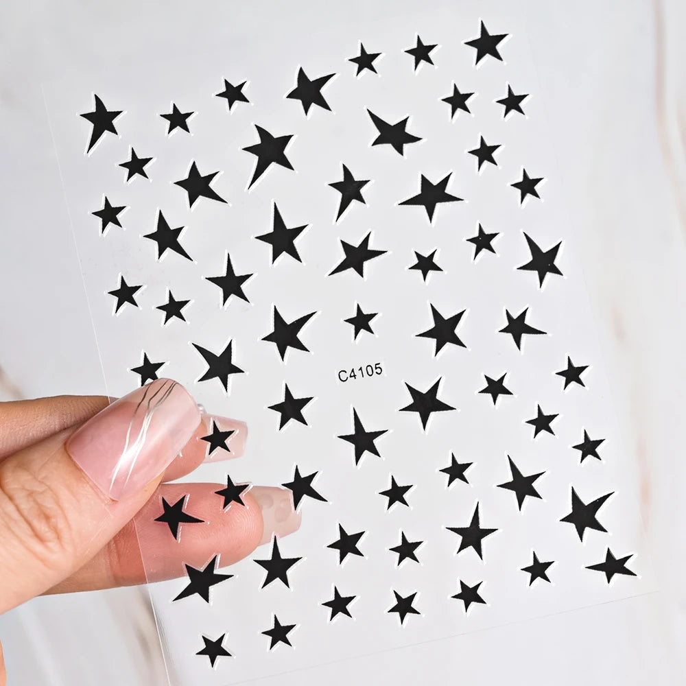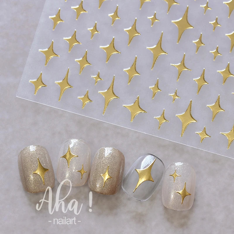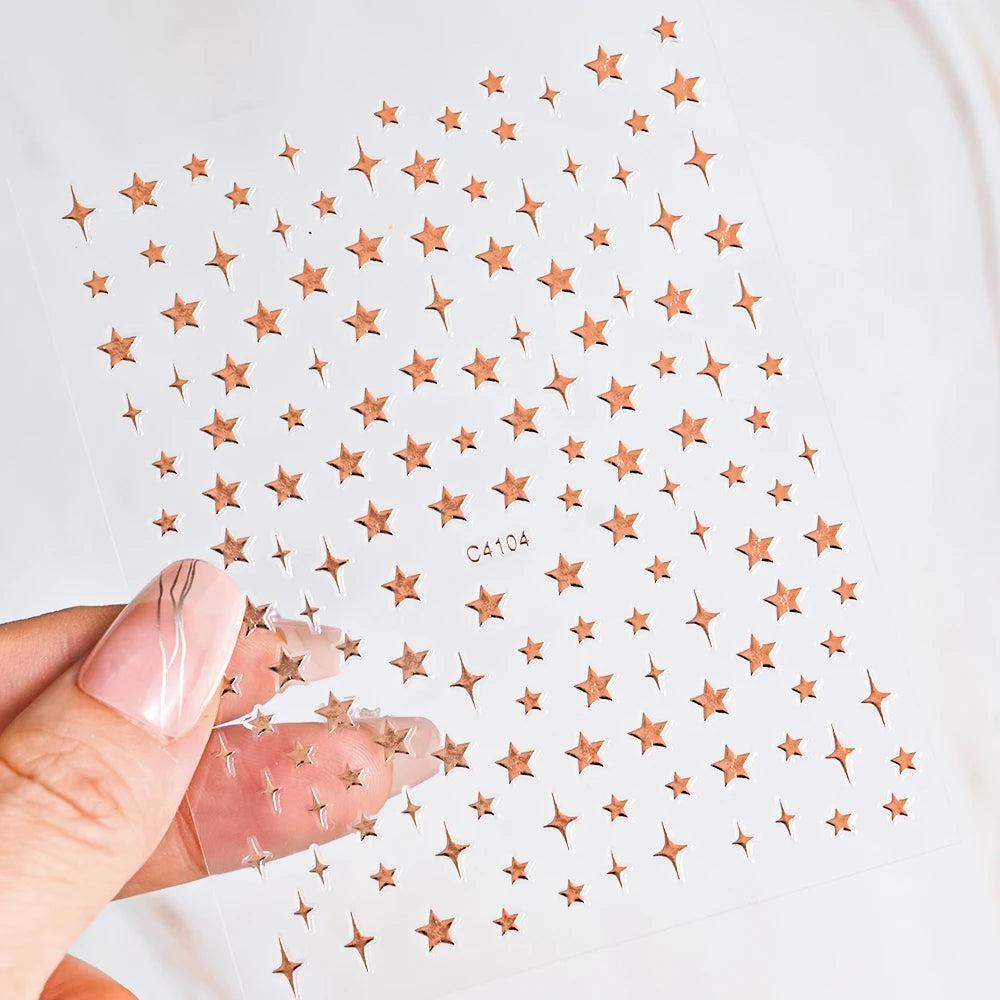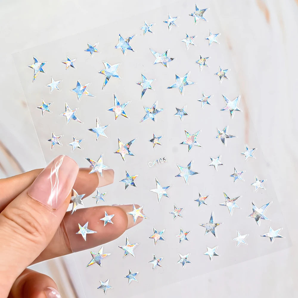 1pc Sliver Gold Star Nail Art Stickers Y2K Charms Self-Adhesive Sliders Laser White Chrome Gel Polish Decals Kawaii Accesories