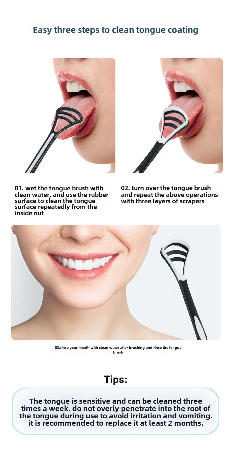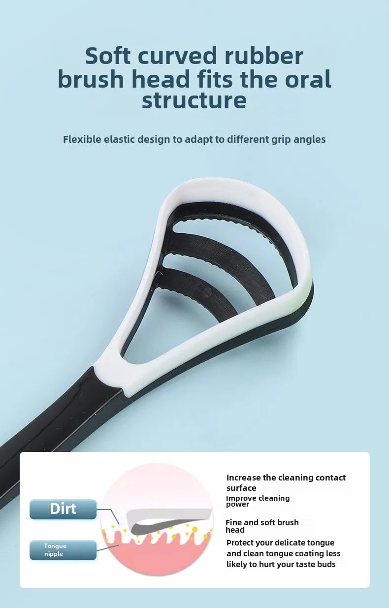 1PCS Silicone Tongue Scraper With Ergonomic Handle Double-sided Fresher Breath Tongue Cleaning Brush Oral Hygiene Tool Wholesale