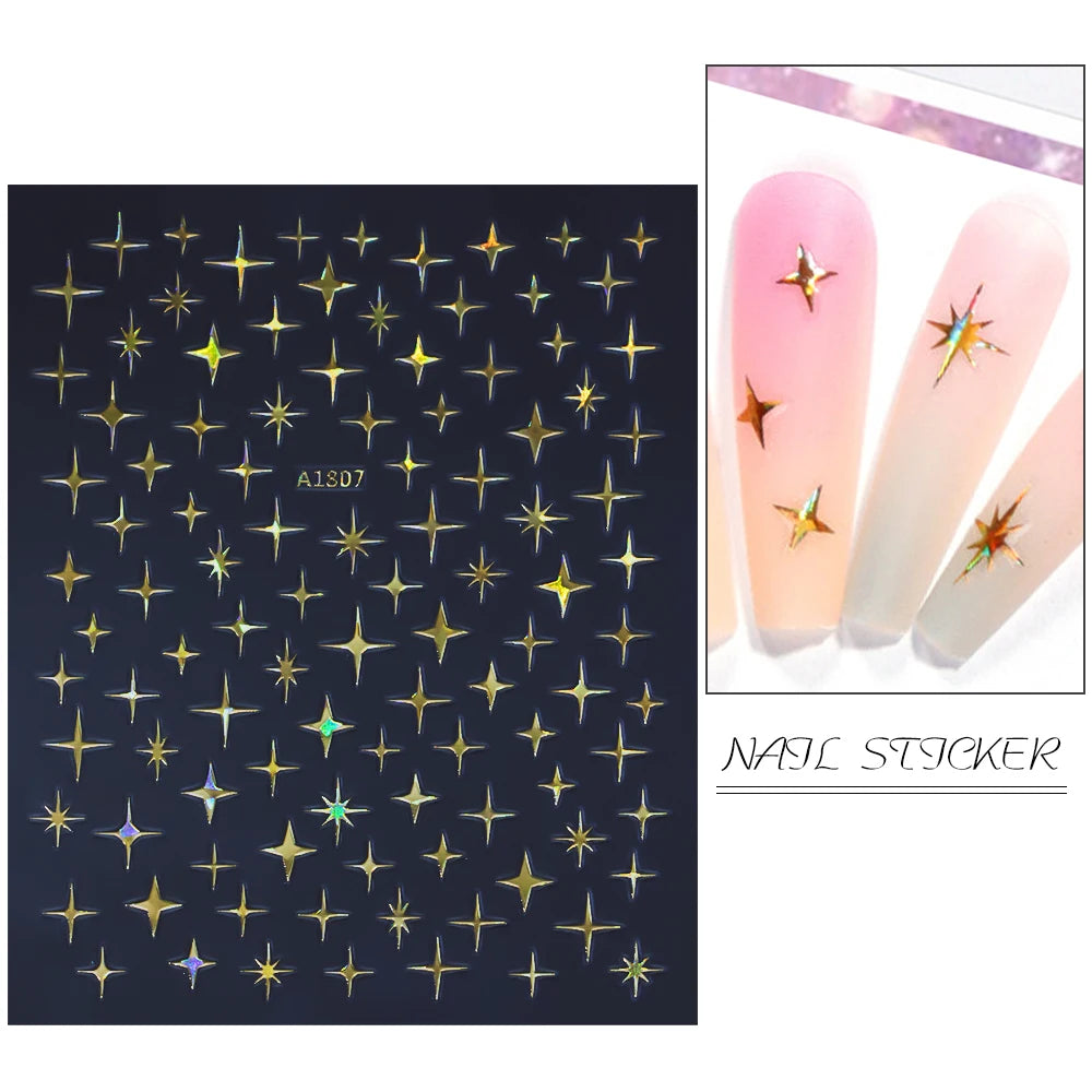 1pcs Star-Themed Nail Art Stickers 3D Self-Adhesive Plastic Decals With Glitter Finish Anime Rectangle Shape Ideal For DIY Nails