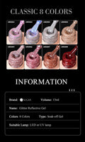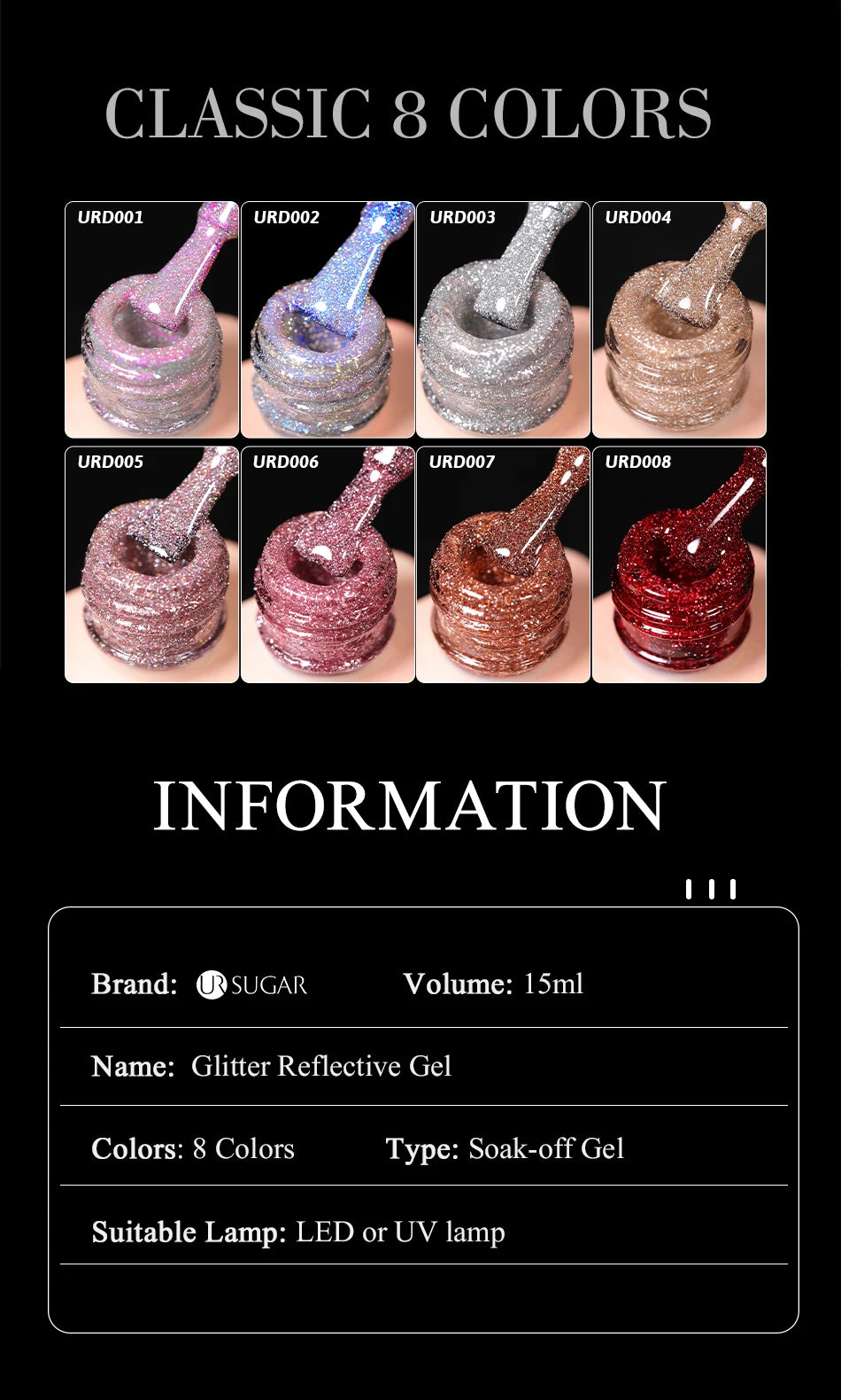 UR SUGAR 15ml Champagne Gold Sliver Reflective Glitter Gel Nail Polish Varnish Semi Permanent Soak Off UV Gel For Manicure Art